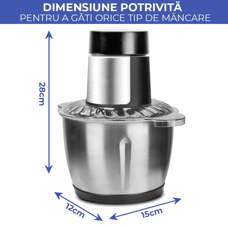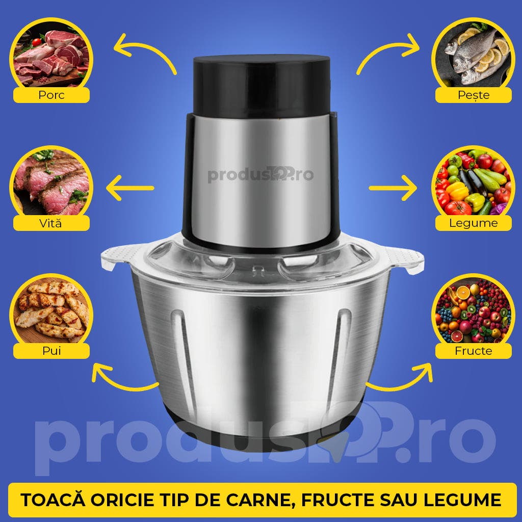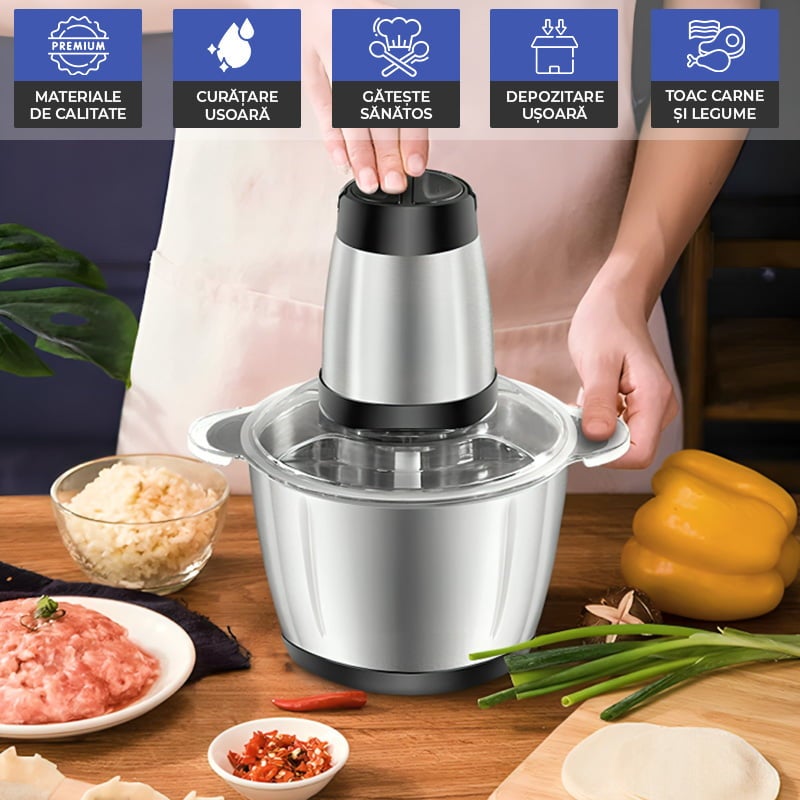 Cu acestă mașină de tocat, poți să tai orice fel de carne sau legume fără efort. E perfect pentru oricine vrea să gătească repede și ușor. Vei putea face orice fel de mâncare vrei, de la salate până la mâncăruri principale, făcând totul mai simplu în bucătărie. E un ajutor mare pentru a mânca sănătos și variat zilnic.